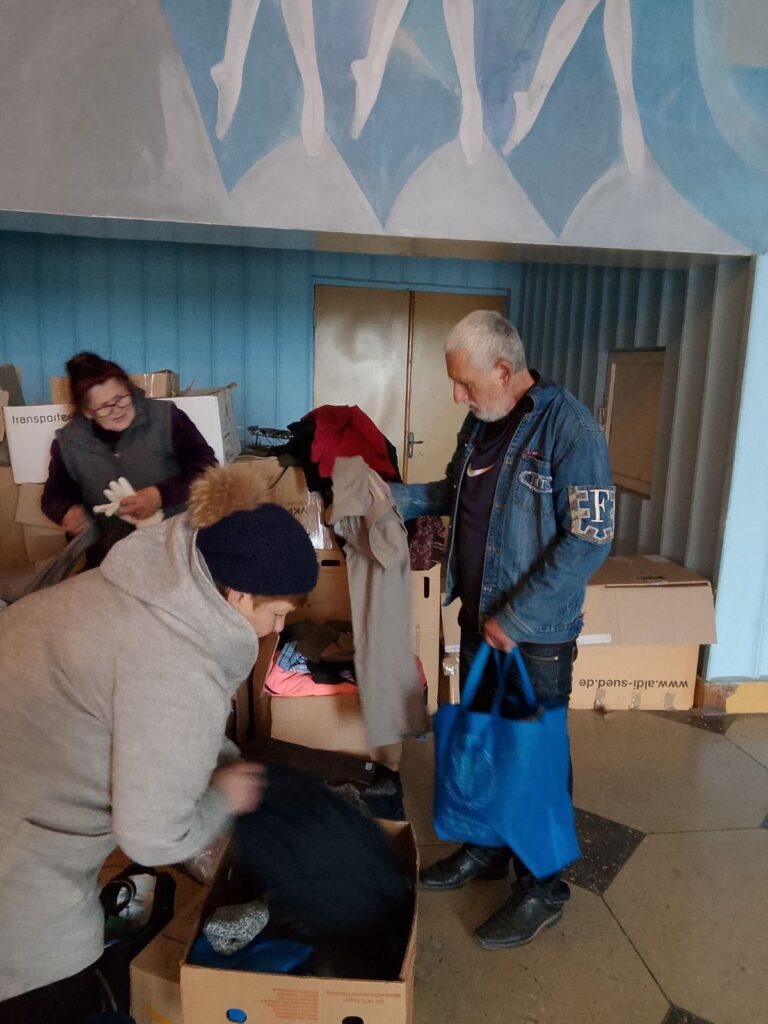 Частина допомоги вже передана жителям сіл Благодатне та Крутий Яр, де люди змогли обрати необхідний одяг.